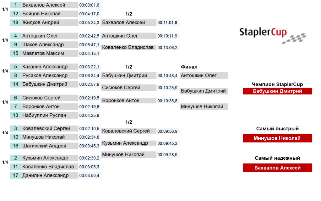 - Обновленный после турнира в Казани индивидуальный рейтинг участников StaplerCup