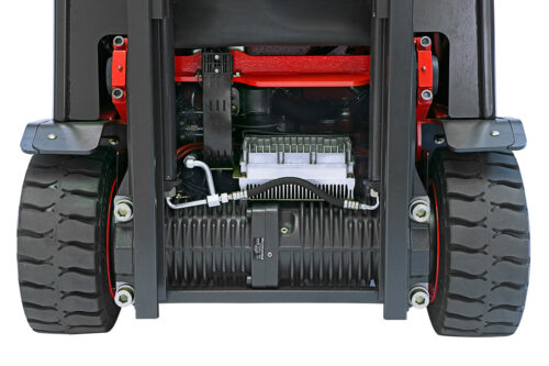 Герметичный алюминиевый кожух обеспечивает полную защиту электроники от влаги и пыли. Новейшие тяговые двигатели и двигатели подъема и бесконтактные джойстики подчеркивают премиальное качество электропогрузчика.